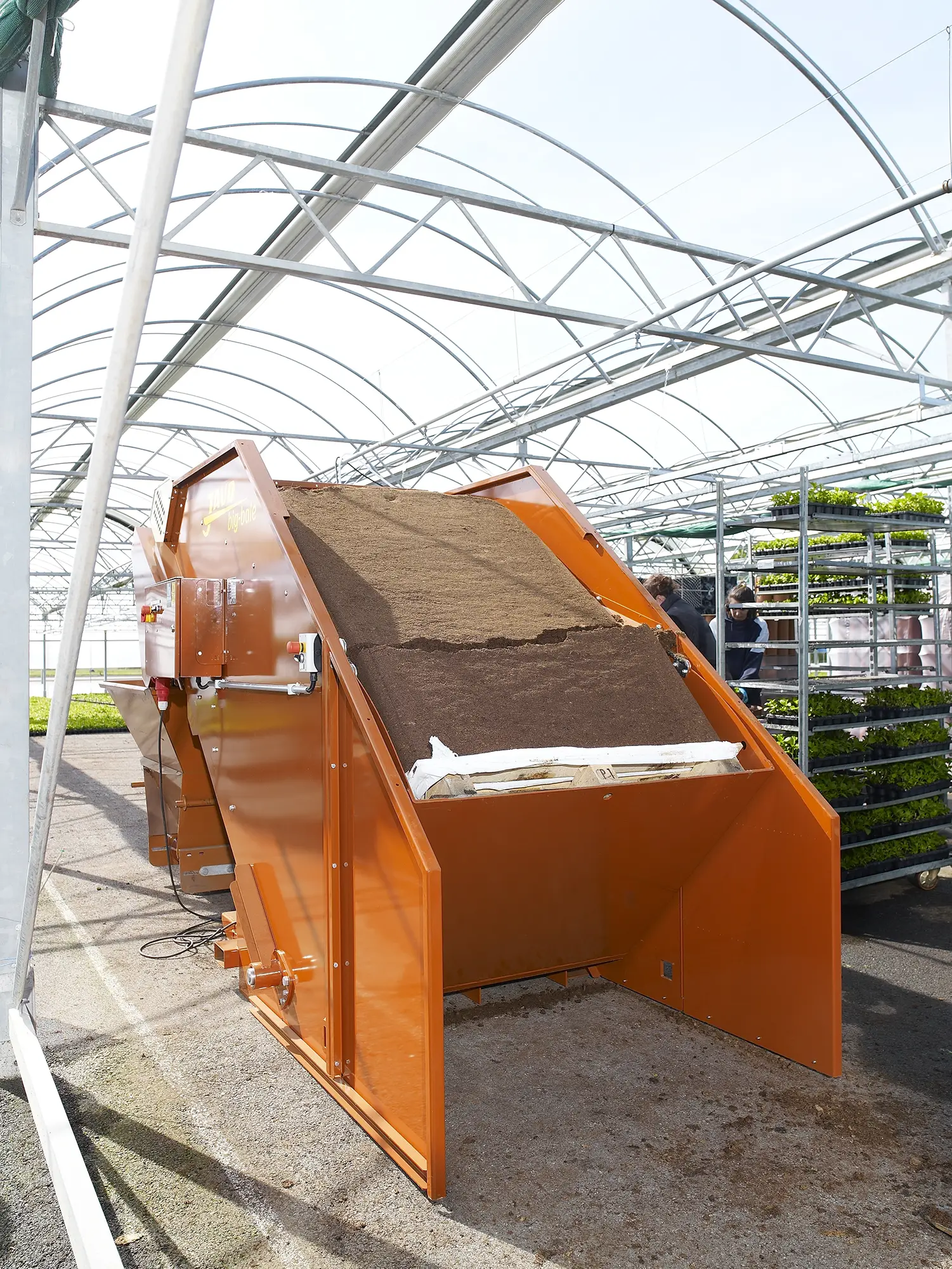 La lavorazione del substrato o della corteccia dalle balle grandi è semplicissima con questa unità di dosaggio. Il sistema di ribaltamento elettrico consente di ribaltare la balla grande in modo continuo e sicuro, mantenendo pulito l’ambiente. La Javo Big Bale è facile da usare e richiede poca manutenzione. La macchina è facile da spostare con un carrello elevatore. Opzionalmente, la Javo Big Bale può essere dotata di ruote ed è più facile da spostare con un transpallet.
