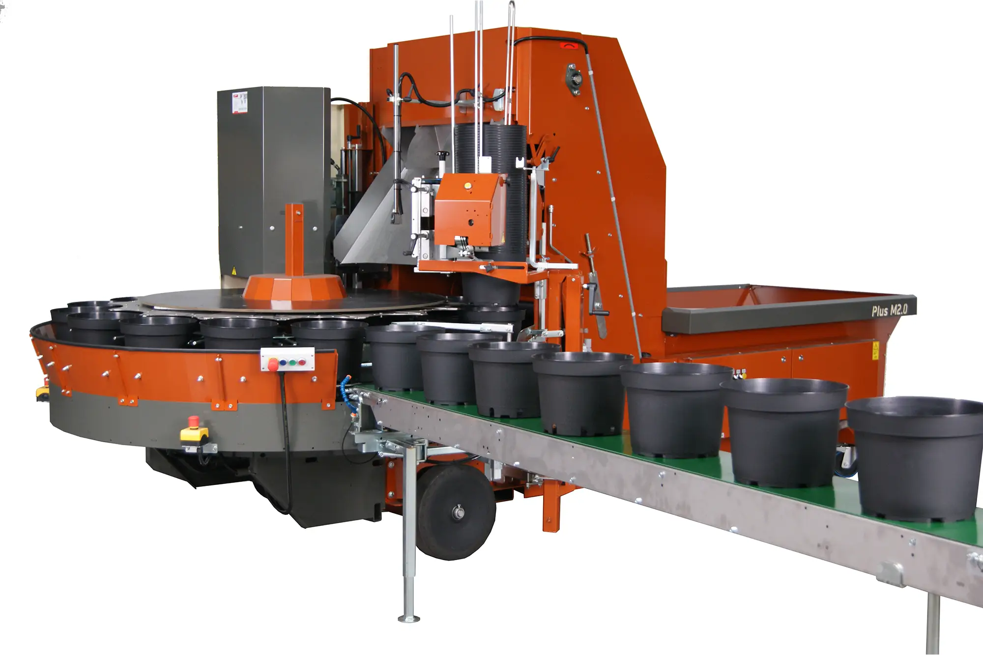 La macchina più avanzata di Javo, la Plus M 2.0 è adatta a vasi da 10 fino a 32 cm (12 litri). Versatile e potente, questa macchina può riempire e forare vasi per piante in contenitore, lavora in modo eccellente con piante a radice nuda ed è sufficientemente grande per affrontare le diverse esigenze di serre e vivai.
