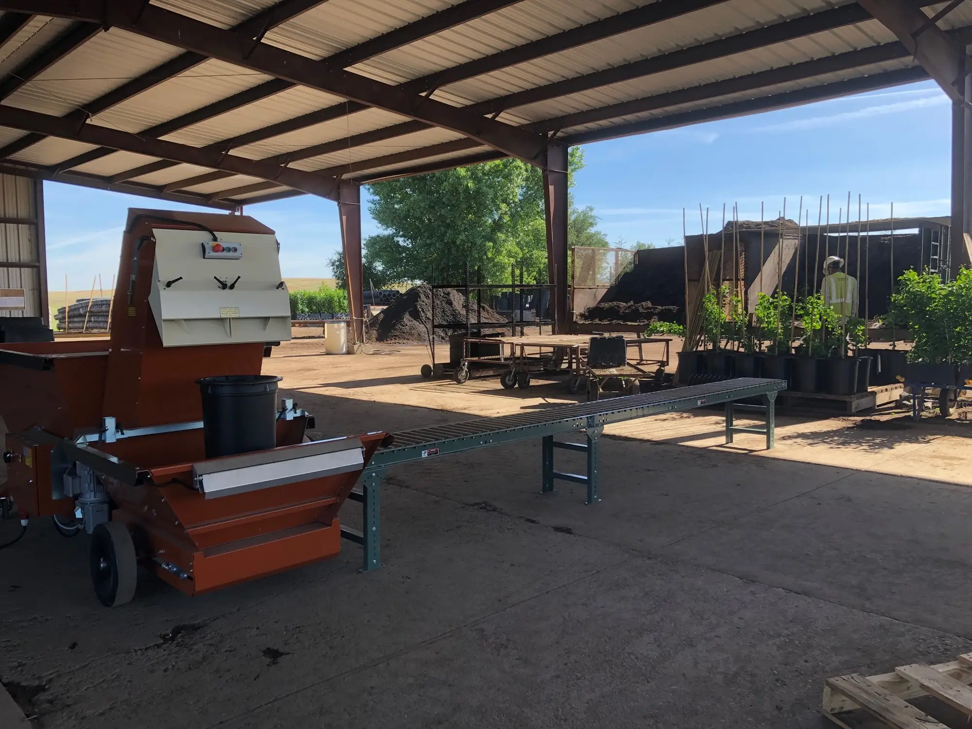 Riempitore di vasi e sacchi. La Javo Unimax ha un contenitore per terriccio con una capacità di 1.500 litri ed è adatto per la movimentazione di sacchi e vasi di tutte le dimensioni. Offre spazio di lavoro per due persone. L’alimentazione del terriccio è possibile da tre lati della macchina.